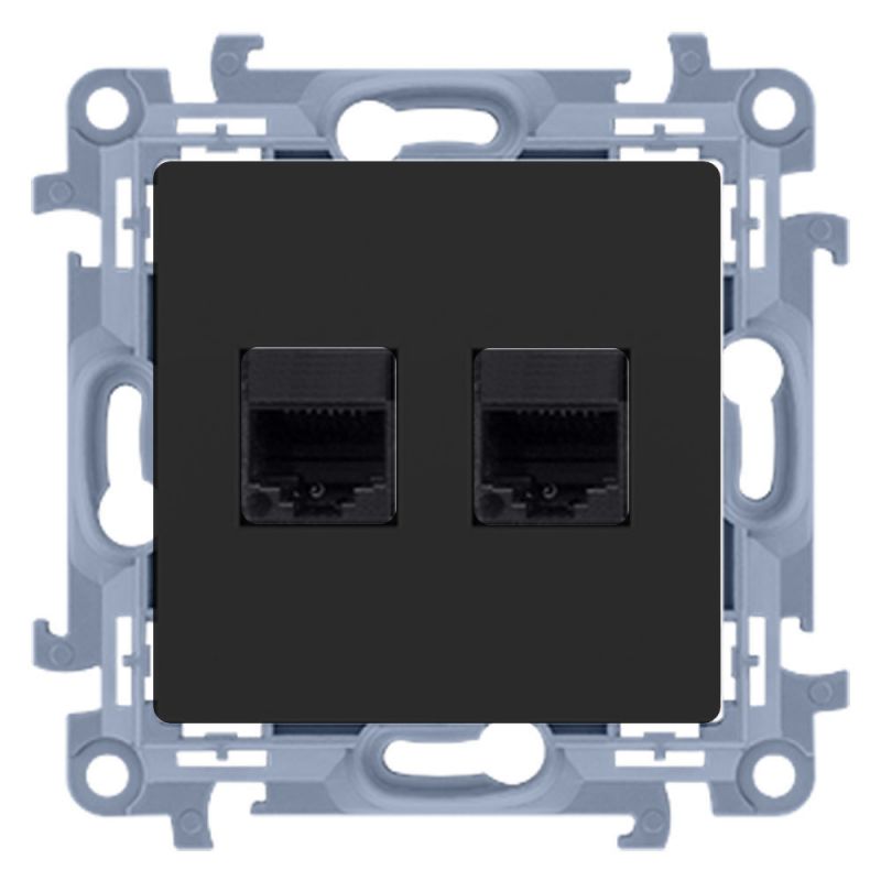 SIMON 10 Gniazdo komputerowe podwójne 2xRJ45 kat. 6 do ramki CZARNY MAT C62.01/49